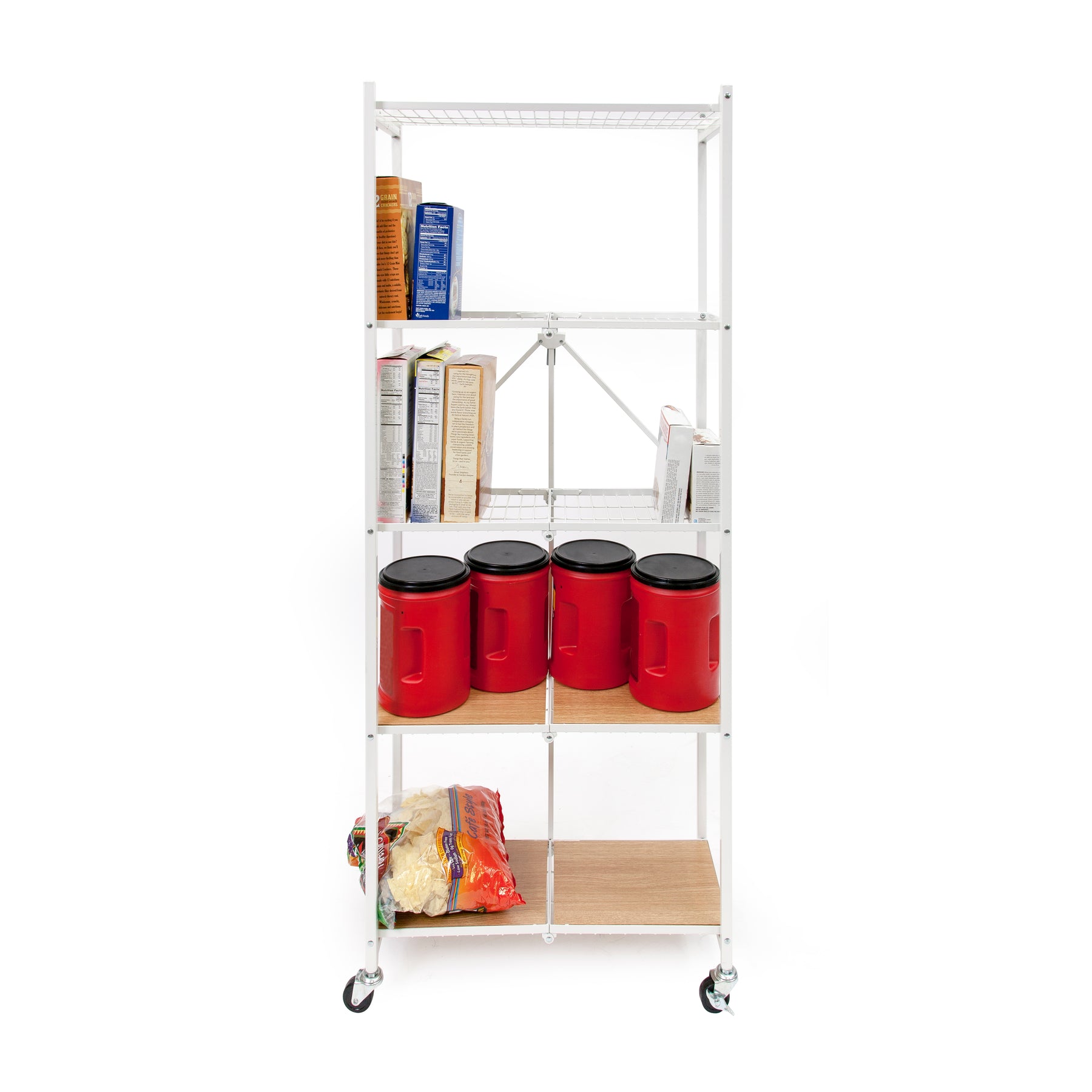 With five shelves and the added mobility of wheels, this rack provides ample storage space and accessibility for your kitchen essentials.