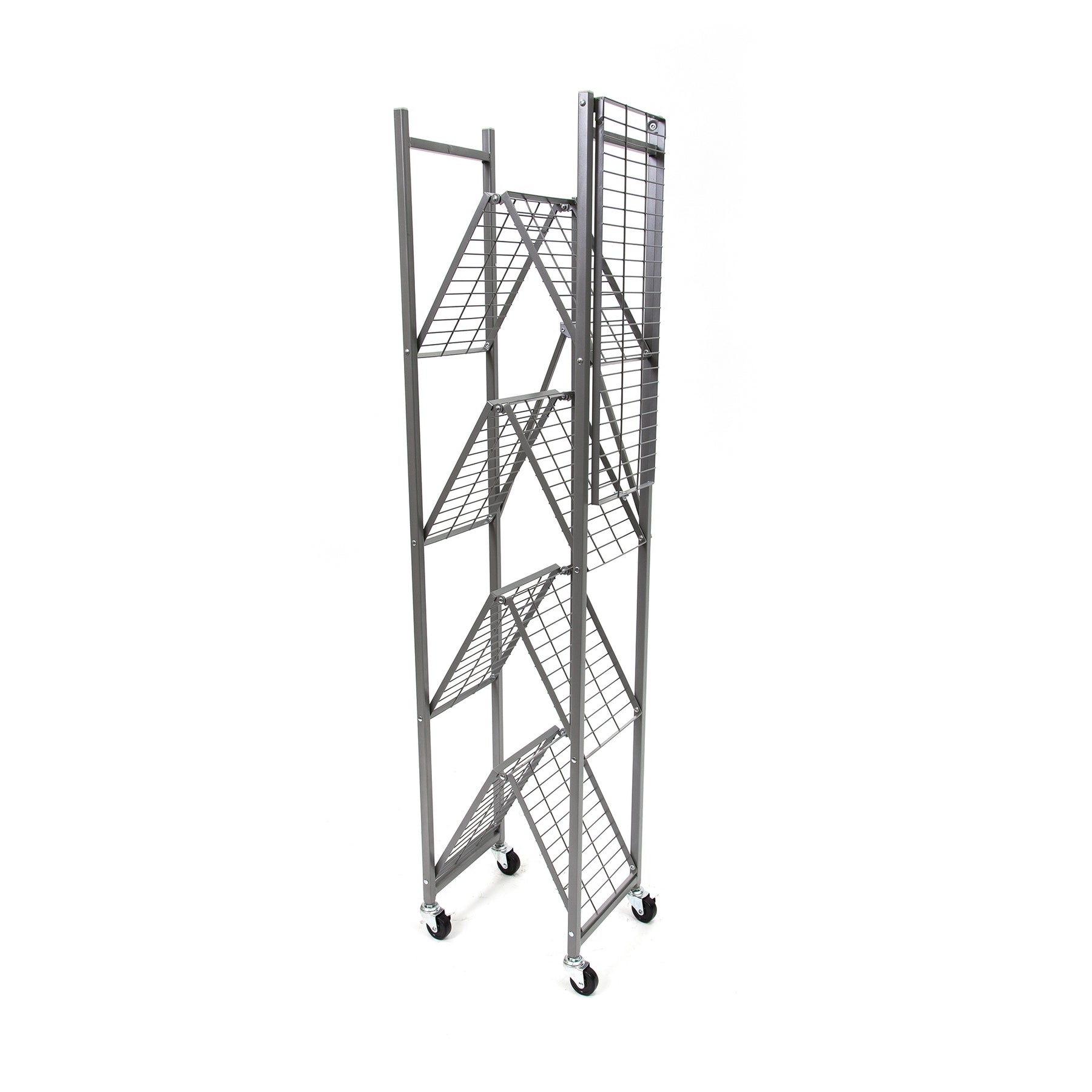 Its sleek design comes with 4 wooden inlays - great for holding heavy items with its weight capacity of 100 lbs. Put it in the kid's playroom to organize games, in the garage to store heavy paint cans, or in the pantry to hold food. You will find so many uses for this rack, all you have to do is unfold it and put it wherever you want whether it is outside in the garden or in the garage.