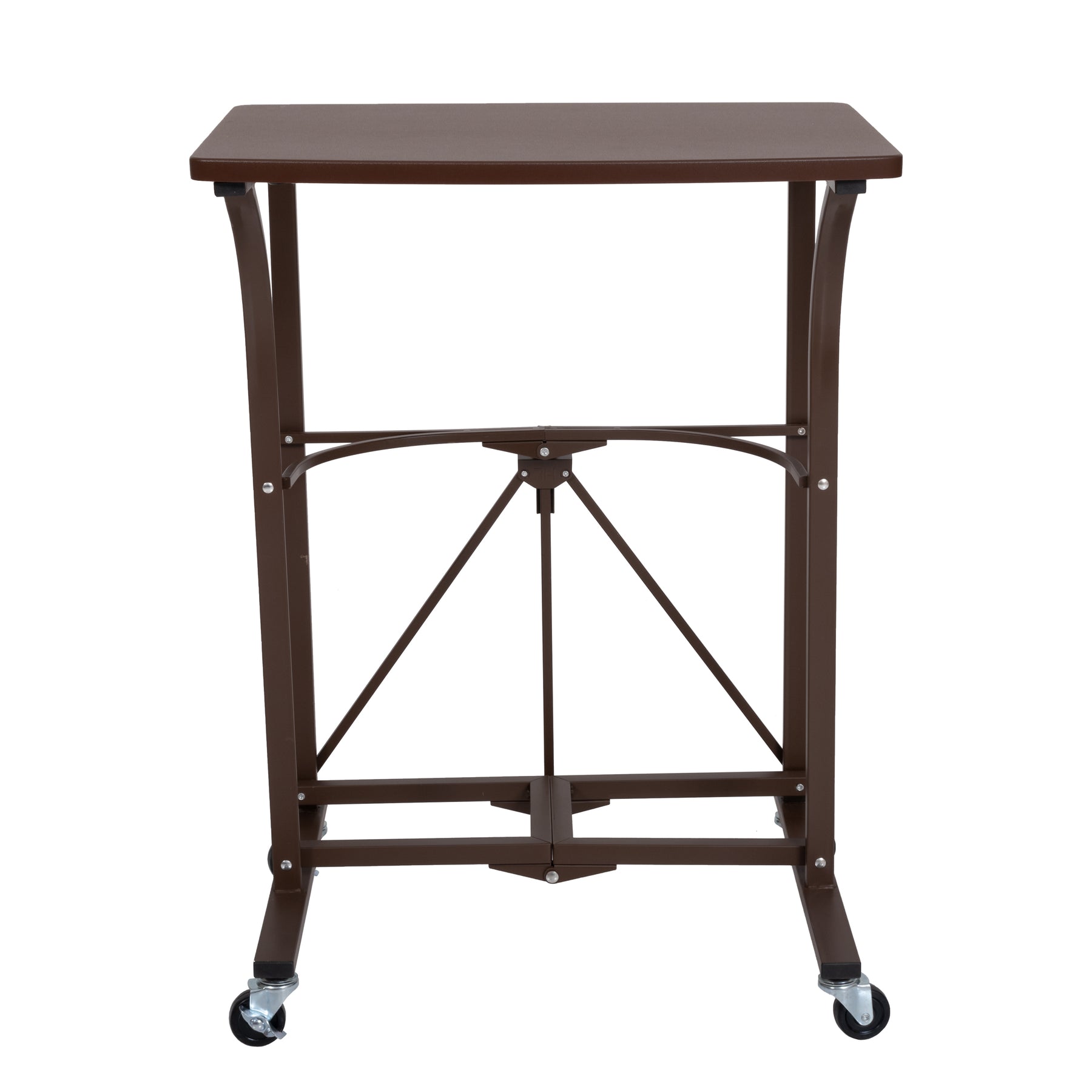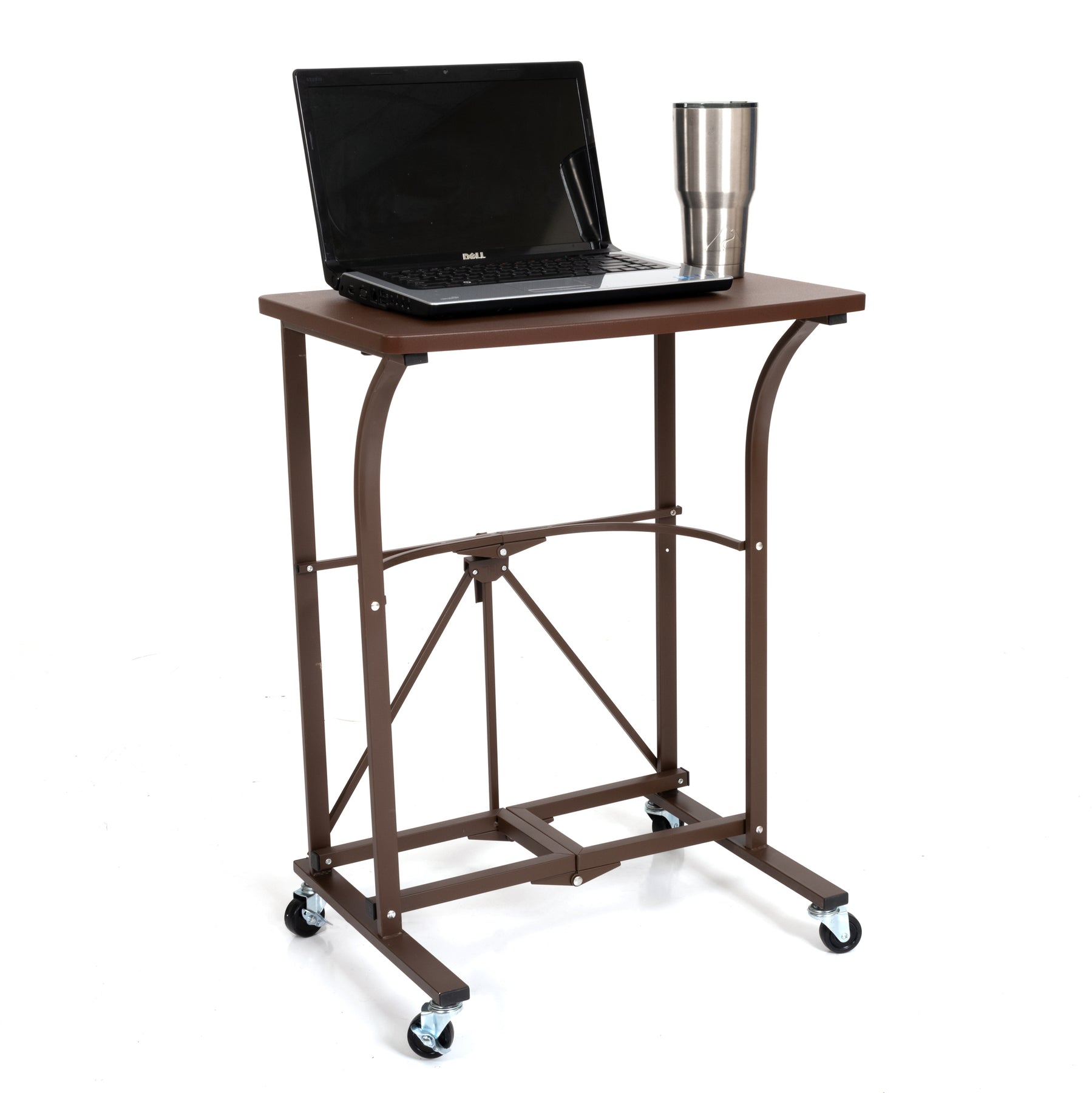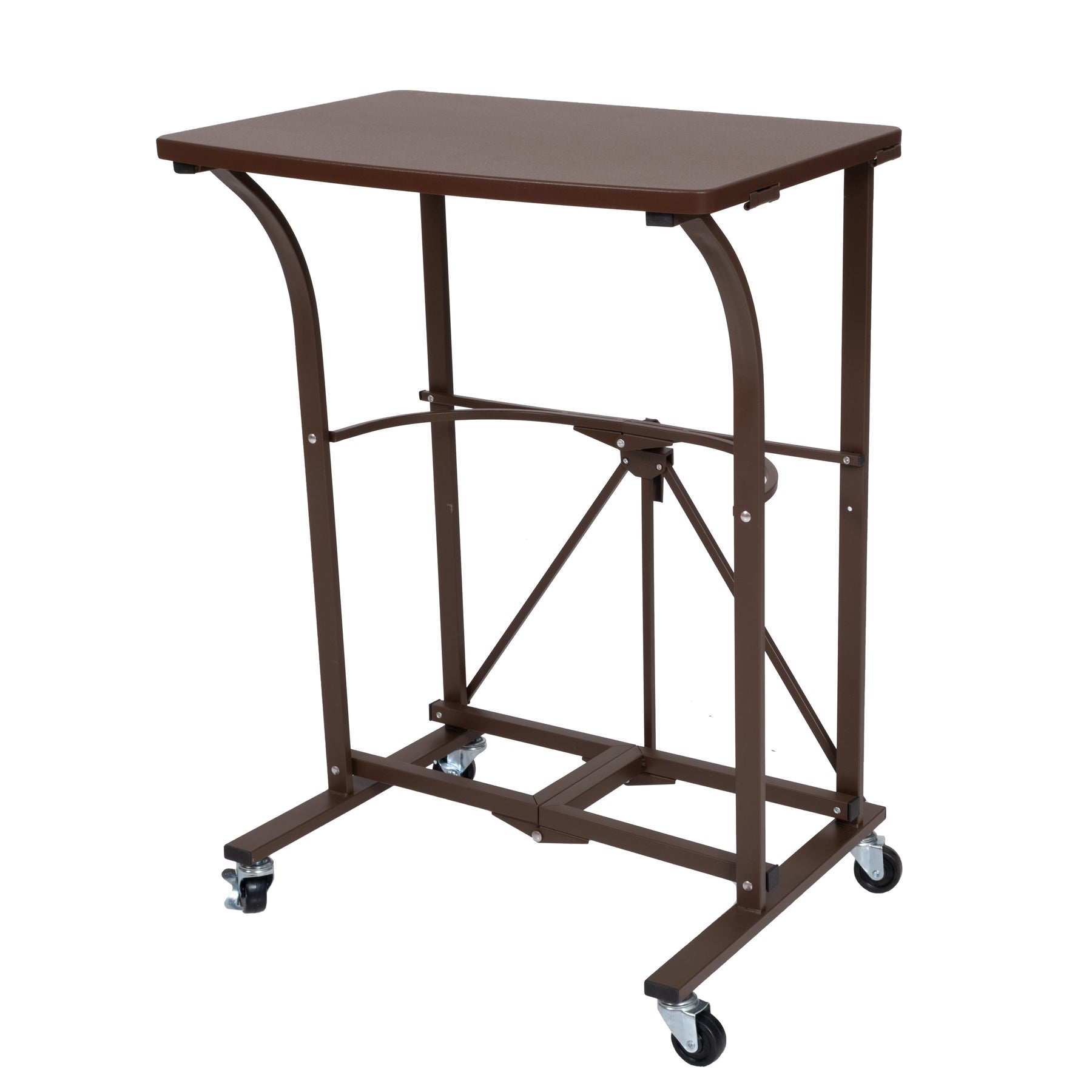 Origami's small compact laptop workstation is made for smooth rolling and ease of mobility. It comes with 4 professional-grade wheels that can be easily removed to meet your unique needs. With the wheels attached, the laptop trolley's maximum weight capacity is 50 pounds and increases to 100 pounds when the wheels are removed and the desk is stationary. The desk can be assembled in under 20 seconds and folded to a depth of under 5 inches, making it the perfect laptop trolley/desk for hospitals, professors, teachers, and working people that have to constantly move their work area. With a one-piece tabletop measuring 23 inches in length, it fits all laptop sizes including bulkier commercial graded screens for hospitals and industrial industries.