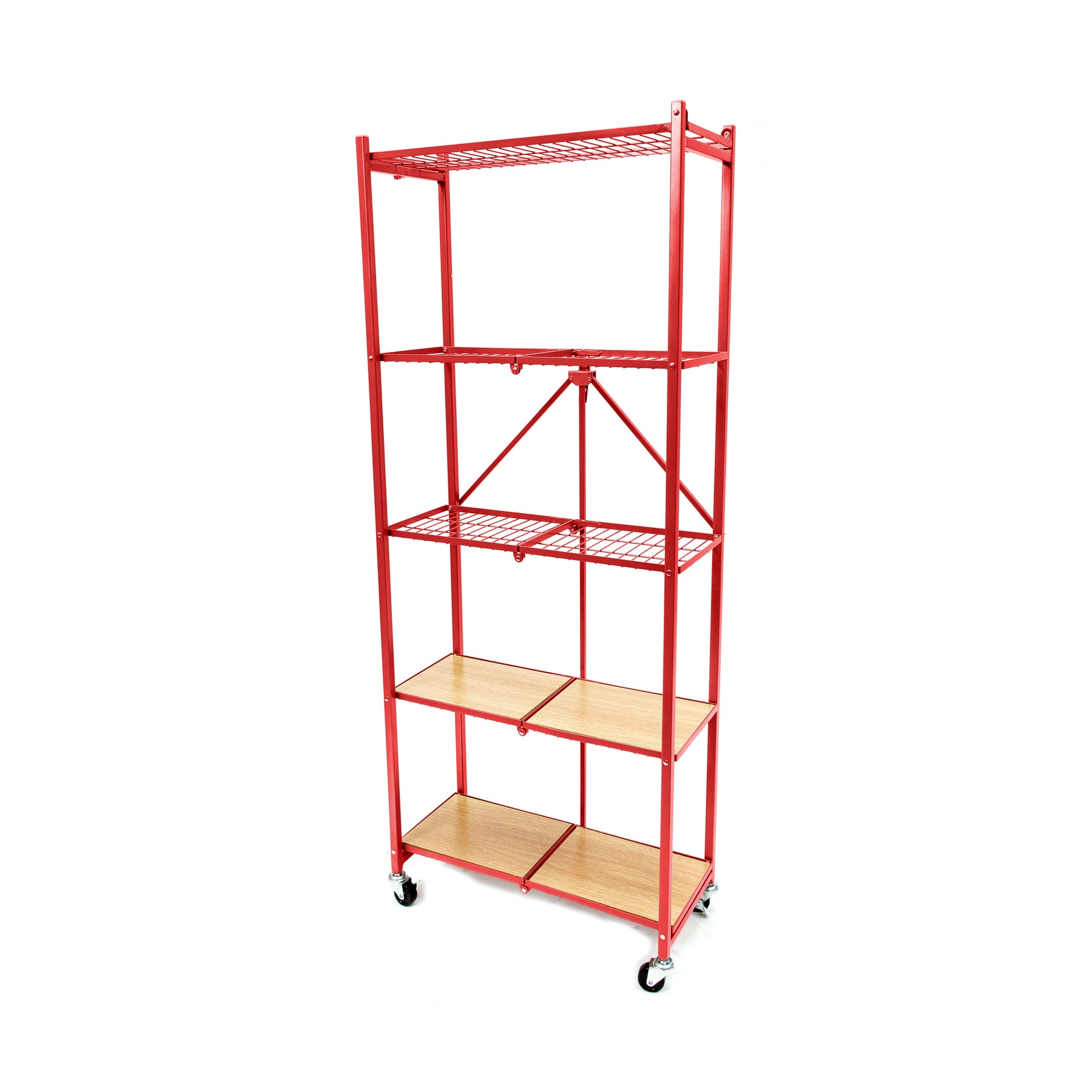Its sleek design comes with 4 wooden inlays - great for holding heavy items with its weight capacity of 100 lbs. Put it in the kid's playroom to organize games, in the garage to store heavy paint cans, or in the pantry to hold food. You will find so many uses for this rack, all you have to do is unfold it and put it wherever you want whether it is outside in the garden or in the garage.